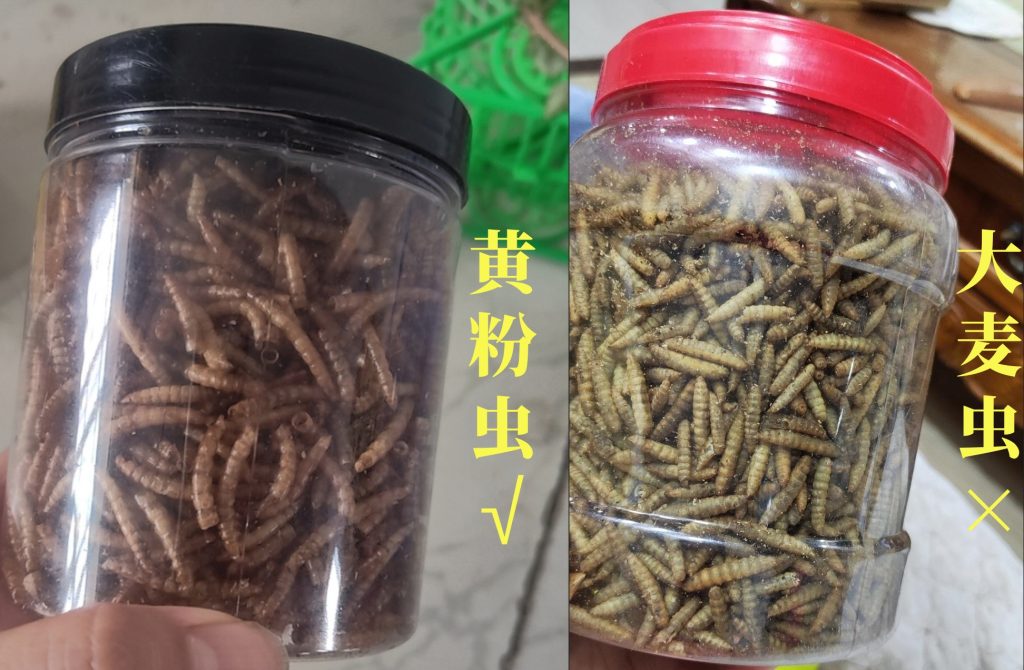 需要格外注意的是,三线鼠特别喜欢吃面包虫,也就是黄粉虫(Tenebrio molitor),但要注意市面上很多店家出售的产品并不是黄粉虫,而是用了黄粉虫图片的大麦虫(Zophobas morio)。黄粉虫体型细长(成虫约2-3厘米),外壳较薄,质地酥脆,仓鼠更容易啃食,颜色浅黄,气味较淡,烘干后自然弯曲,而大麦虫体型粗壮,明显比黄粉虫大(成年幼虫可达5-6厘米),烘干后虫体僵硬、笔直,颜色偏深黄或棕色,外壳较硬,适口性较差,仓鼠不喜欢吃。目前的市面上商家特别容易混淆二者,因此在购买时要格外注意。